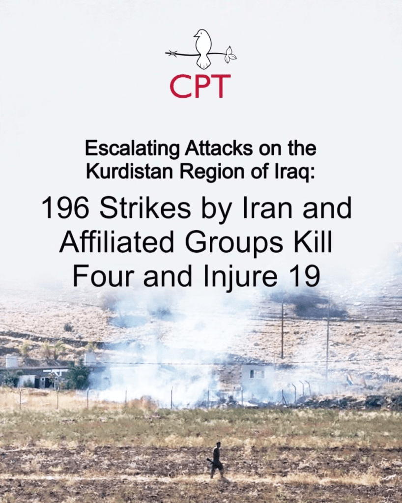 Siden begynnelsen av krigen mellom USA/Israel og Iran 28. februar 2026 har iran‑støttede styrker inklusive Irans revolusjonsgarde (IRGC) og tilknyttede militsgrupper intensifisert angrepene mot Kurdistan‑regionen i Irak (KRI). Ifølge en fersk rapport fra menneskerettsorganisasjonen Community Peacemaker Teams – Iraqi Kurdistan (CPT‑IK)er det registrert 196 separate drone‑, rakett‑ og missilangrep mot mål i regionen fra 28. februar til 8. mars 2026.
