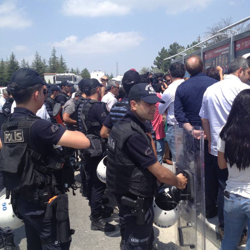 -Før rettshøringen i Heavy Penal Court (Kriminaldomstolen for alvorlige forbrytelser) skulle HDP ha en markering og pressekonferanse utenfor bygningen til Forfatningsdomstolen, hvor de internasjonale observatørene og advokater fra HDP skulle delta. Her ble vi stanset noen hundre meter før bilene kom fram dit, og så møtt med et massivt oppbud av vanlig politi og opprørspoliti når vi ble sluppet fram til innkjørsveien til Domstolen. 9 av advokatene slapp etter en stund inn på området, assistert av en politvakt hver, bare for å bli fortalt at vi ikke fikk lov til å komme inn dit og heller ikke fikk ha noen markering utenfor. Begrunnelsen var unntakstilstanden som forbød slike ansamlinger, her var det snakk om ca 30 -35 personer. En av HDP-advokatene fikk imidlertid lov til å komme med en kort redegjørelse, sperret inne av politistyrkene. Før vi måtte dra fra stedet.