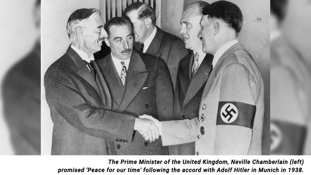 Chamberlain, Storbritannias statsminister, erklærte at avtalen ville sikre «fred for vår tid».