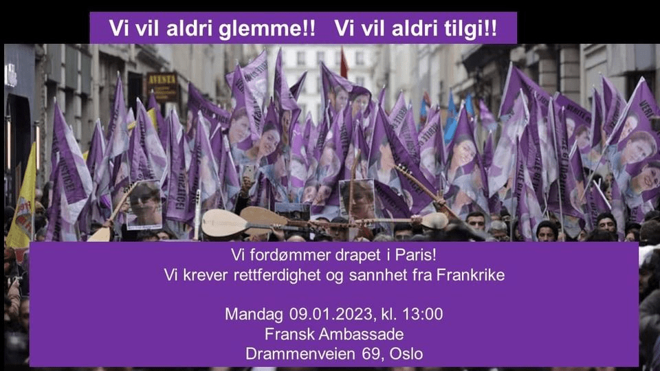 De skriver: -Vi kan ikke akseptere at kurdiske aktivister blir drept på Europeisk jord. Etter 10 år med stillhet etter det første drapet, ble igjen kurdiske aktivister drept i Europa. Vi krever rettferdighet og sannhet fra Frankrike!