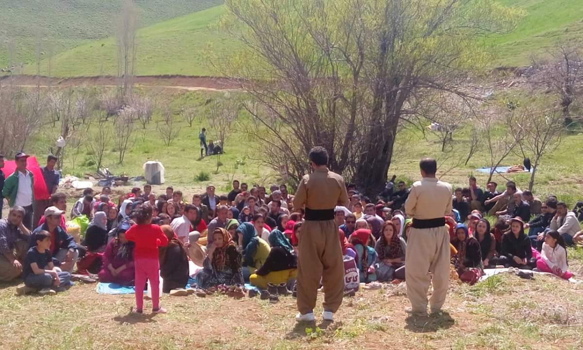 Første mai markering i 2018 i Rojhalat utenfor den kurdiske byen, Sanandaj (på kurdiske Sine). I Iran er det forbudt å arrangere 1. mai tog, Derfor har kurdiske aktivister markert dagen utenfor byen.