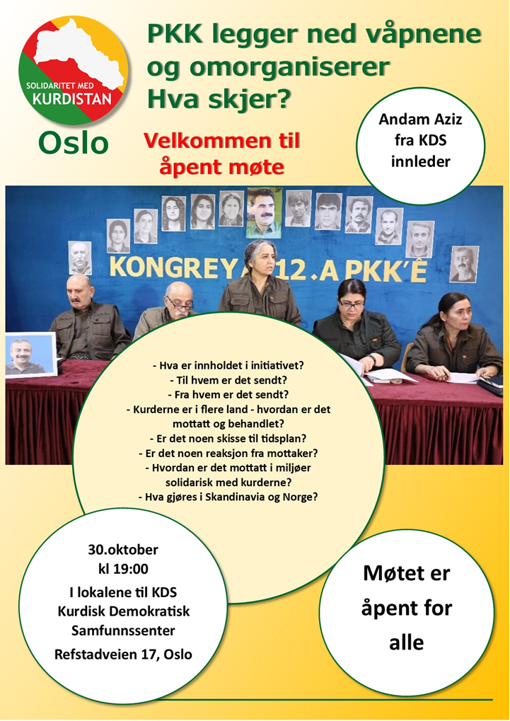 Begge disse dramatiske utviklingene ønsker vi i Solidaritet med Kurdistan å høre mer om, og vi inviterer i den forbindelse til en dagskonferanse på Mela-huset i Oslo den 10.05. På dagskonferansen får vi besøk både av en høytstående representant for AANES, og et parlamentsmedlem fra Amed (Diyarbakir) for det pro-kurdiske opposisjonspartiet Folkenes Enhets og Demokrati Parti (DEM) i Tyrkia.